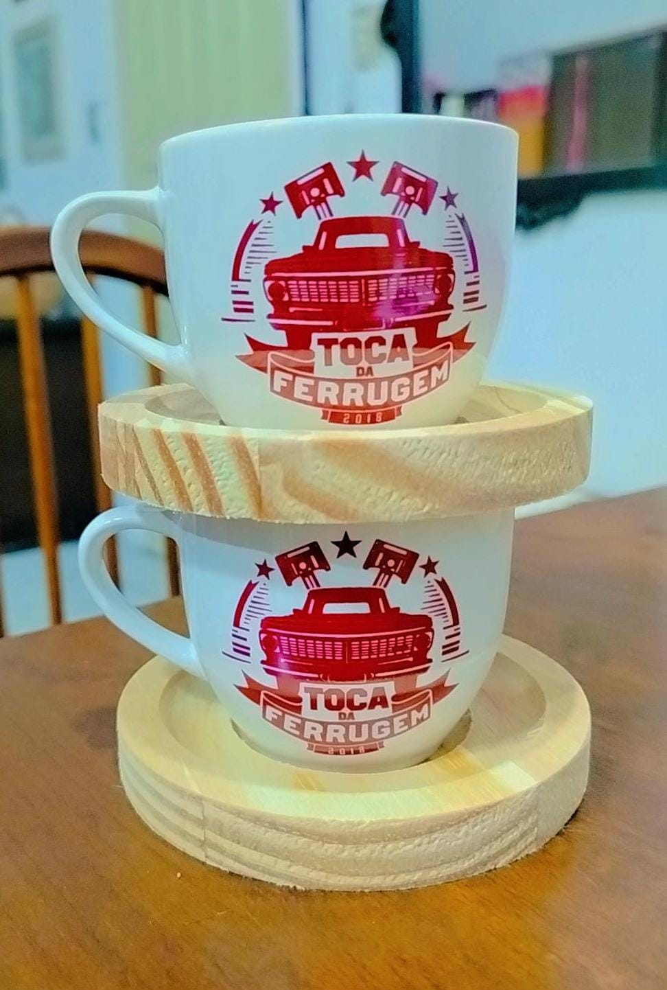 Linda Xicara com pires em madeira